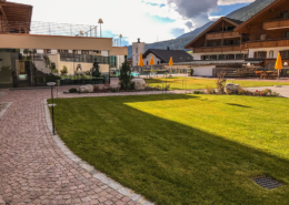 Auch die neue Dachterrasse wurde begrünt. Die Bewässerung wurde überall erneuert und automatisiert, Rollrasen verlegt und dann war die Außenanlage termingerecht bereit für die ankommenden Gäste.